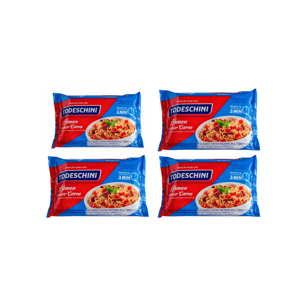 Contiene: 4 x Fideos instantáneos sabor a carne Todeschini (85 g / 2.99 oz)