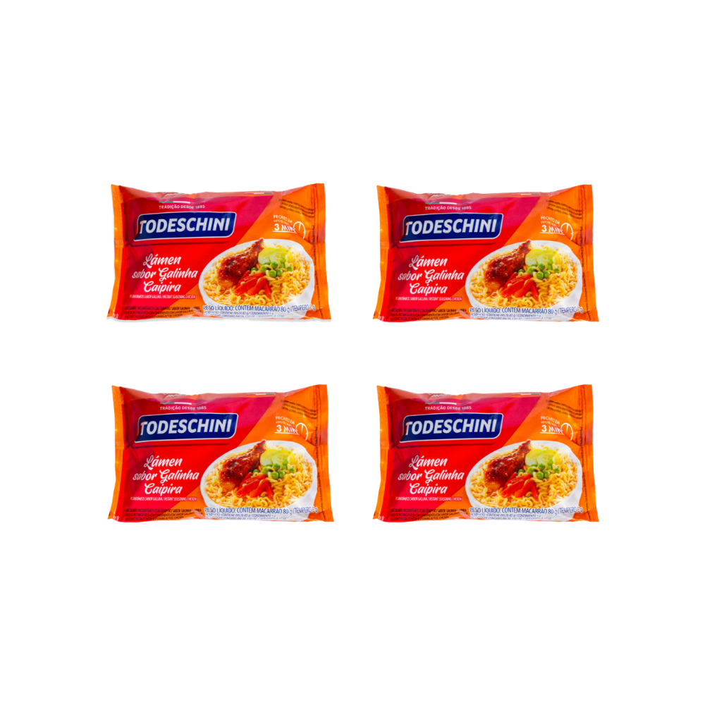 Contiene: 4 x Todeschini free-range chicken flavored instant noodles (85 g / 2.99 oz)