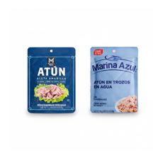 Atún aleta amarilla en trozos en agua Member's Mark (74 g / 2.61 oz) + Atún en trozos en agua Marina Azul (74 g / 2.6 oz)
