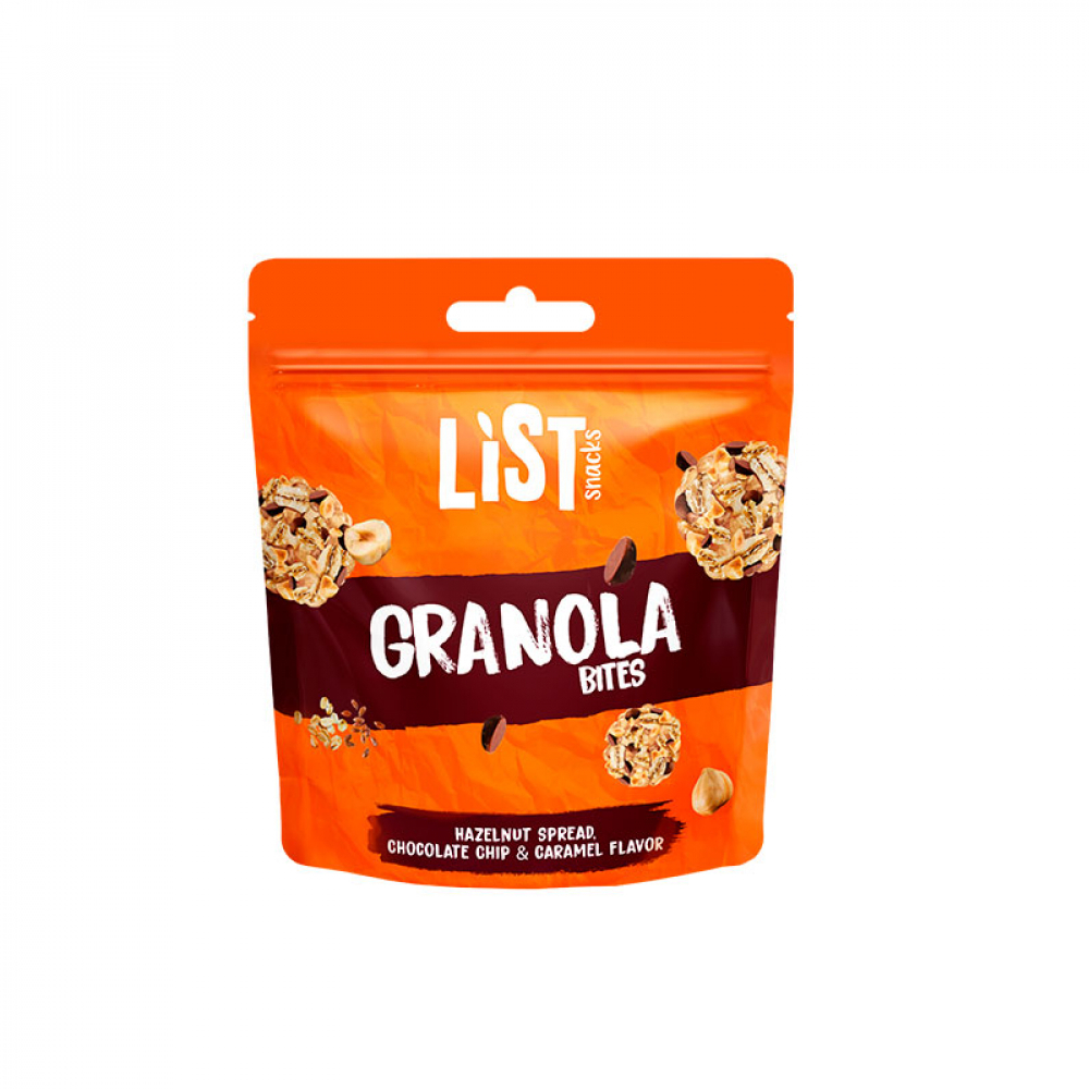 Bocadillos de granola con crema de avellanas, chispas de chocolate y sabor a caramelo List Snacks (30 g / 1.06 oz)