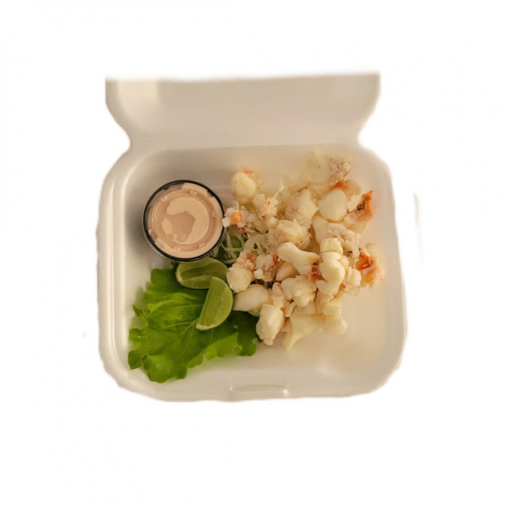 Cola de langosta, sal, pimienta, limón natural, salsa rosa y lechuga