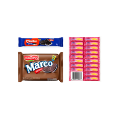 Galletas de chocolate rellenas sabor chocolate Marco HollandPark (360 g / 12.69 oz) + Galleta dulce sabor chocolate con relleno sabor a vainilla Marilan (80 g / 2,82 oz) + Galletas con crema sabor fresa Cremelo Mrs. Bector's Cremica (440 g / 15.5 oz)
