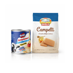 Leche condensada azucarada rellenada Fresko (390 g / 13.8 oz) + Galletas con sabor a miel campetti Divella (400 g / 14.11 oz)