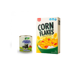 Leche condensada azucarada rellenada Zivel (390 g / 13.75 oz) + Cereal de maíz tostado Kiggins (510 g / 1.12 lb)