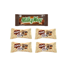 Pastel cubierto de cacao con relleno de chocolate Keks Bifa (4 x 45 g / 1.59 oz) + Barras de chocolate con leche tamaño divertido Milky Way (2.66 oz / 75 g)