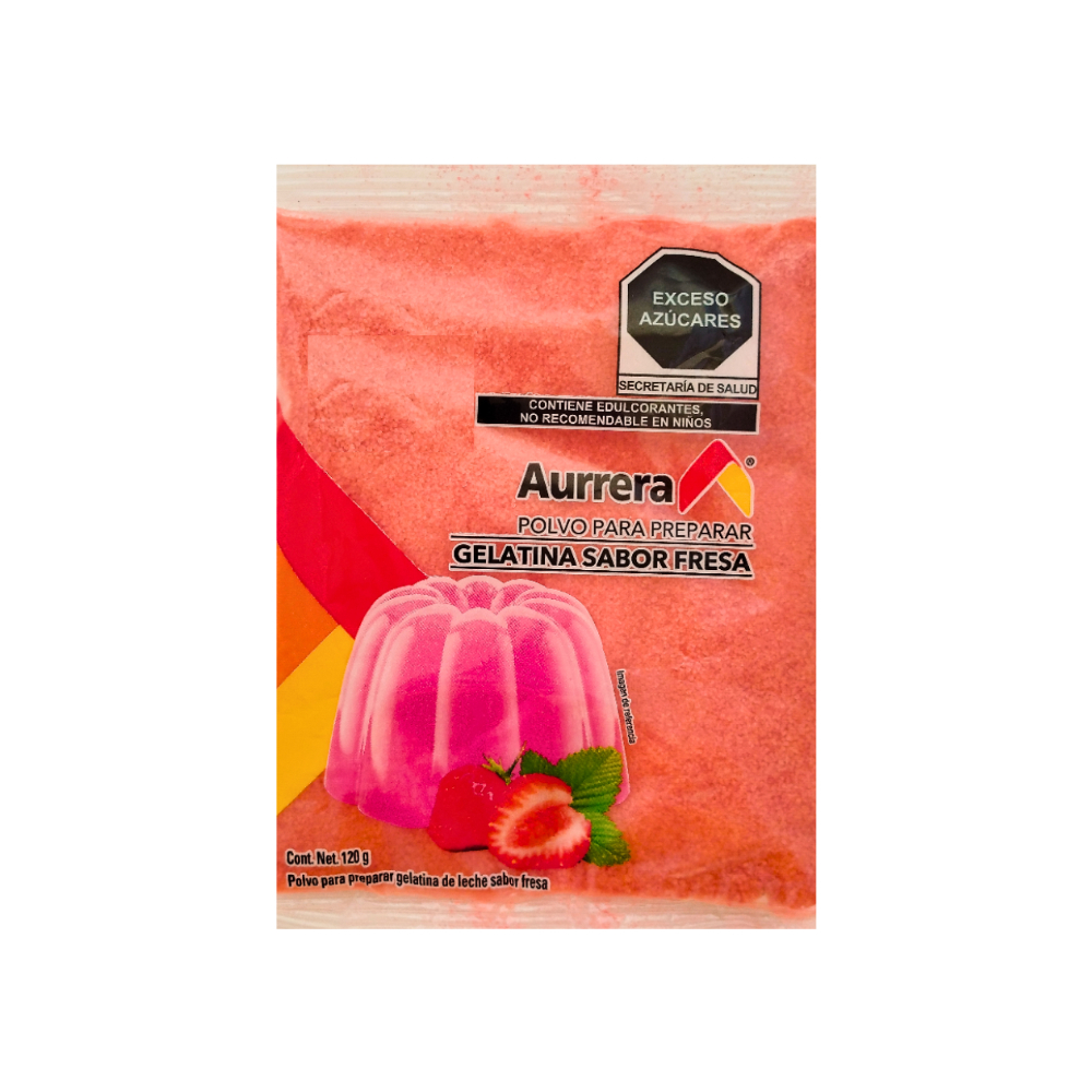 Polvo para preparar gelatina de leche sabor fresa Aurrera (120 g / 4.2 oz)