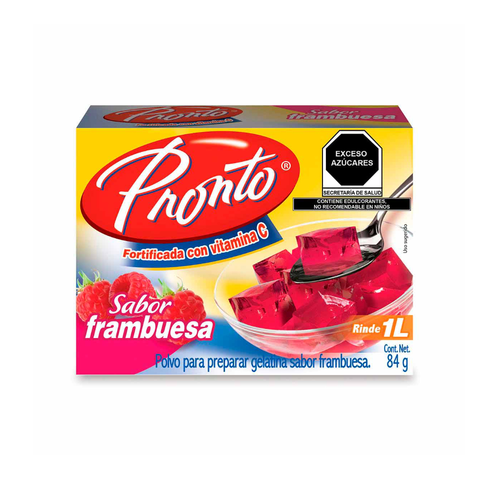 Polvo para preparar gelatina sabor frambuesa fortificada con vitamina C Pronto (84 g / 2.9 0z)