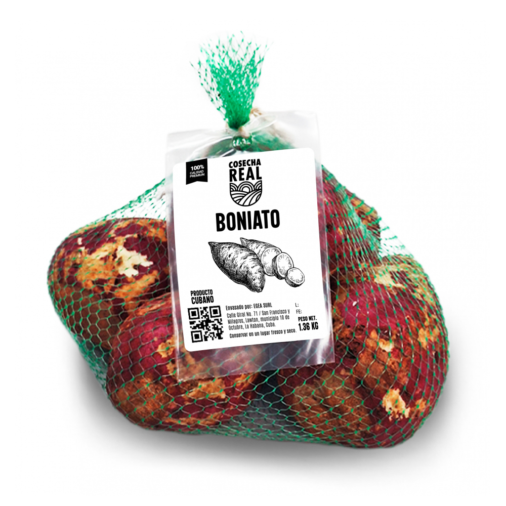 Boniato cubano fresco, seleccionado cuidadosamente por su textura firme y sabor suave. Ideal para hervir, asar o preparar en recetas tradicionales. Producto natural y versátil, directo del campo a la mesa.