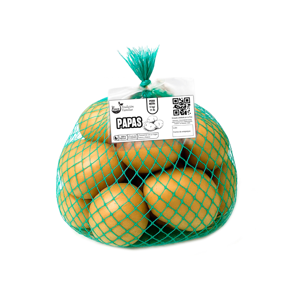 Lleva el sabor auténtico del campo cubano a la mesa de tus seres queridos con las Papas La Finca, ahora disponibles para envío directo a Cuba. Cada paquete contiene 5 kg (aproximadamente 11 lb) de papas enteras, cuidadosamente seleccionadas y 100% naturales, provenientes de la rica cosecha nacional. Este producto esencial no solo garantiza frescura y calidad, sino que también ofrece la comodidad de un envío seguro y confiable, permitiéndote apoyar a tu familia con alimentos básicos y nutritivos sin importar la distancia.