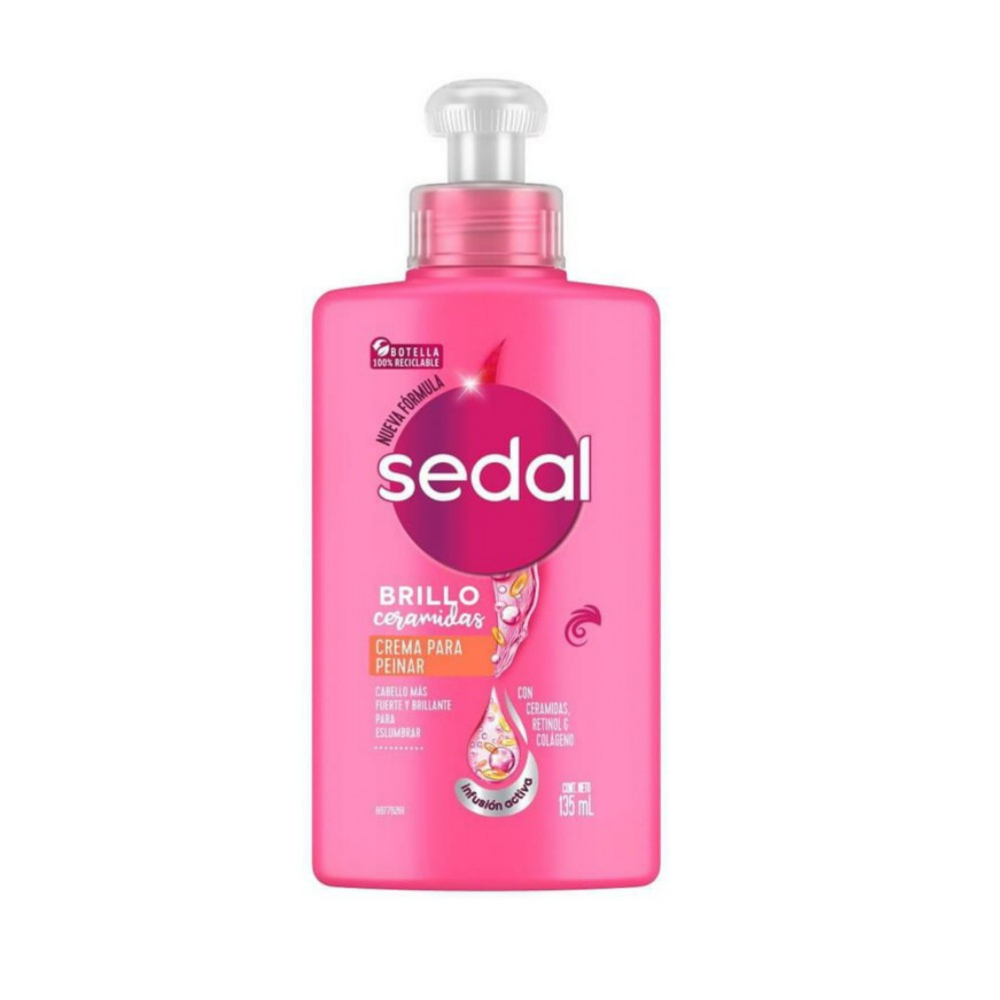 Sedal brillo ceramidas es una crema para peinar con ceramida retinol y colágeno para deslumbrar. La crema para peinar Sedal es ideal para suavizar y dar brillo al pelo. Para pelo seco y dañado, reparación de puntas abiertas. La fórmula exclusiva de la crema para peinar contiene micro ceramida complex, envuelve suavemente las fibras de tu cabello, dándoles mayor fuerza y un brillo extra. Mayor resistencia debido al quiebre comparado con champú sin agentes acondicionadores.
