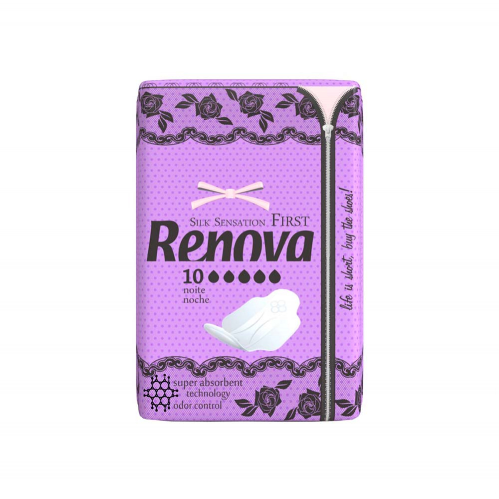 Compresas nocturnas ultrafinas con alas silk sensation first Renova (10 U)