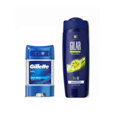 Desodorante de gel antitranspirante ola genial Gillette (70 ml) + Champú para hombres sin sal con aceite de oliva Gila'r (400 ml)