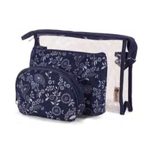 Juego de estuches para cosméticos floreado color azul oscuro
