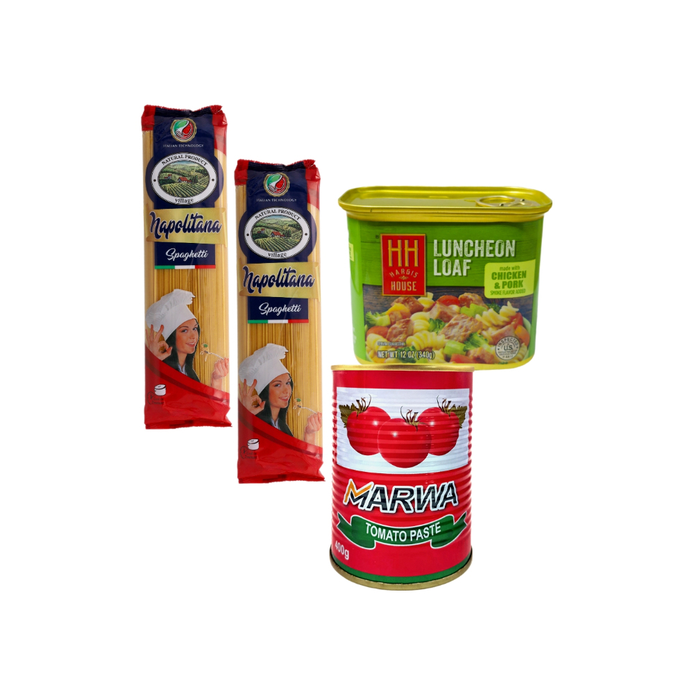 Jamón cocido con sabor ahumado a cerdo y pollo + Espaguetis napolitana + Pasta de tomate