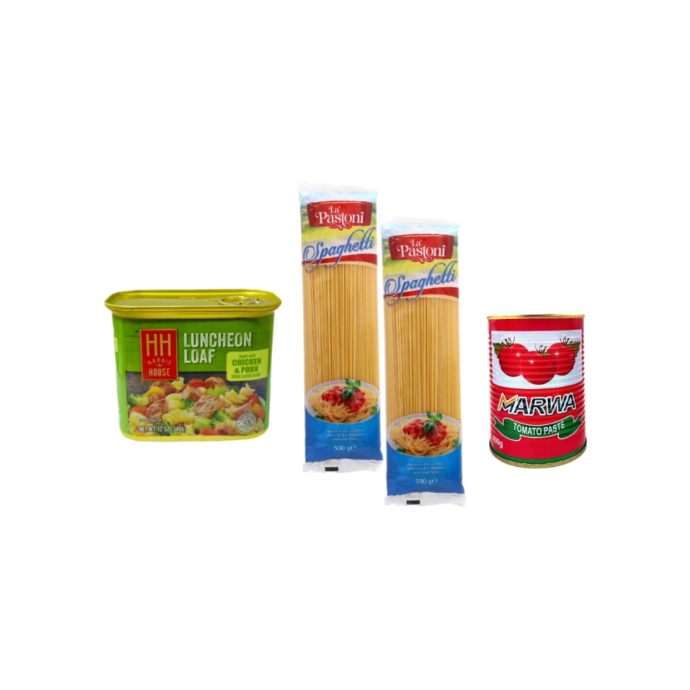 Jamón cocido con sabor ahumado a cerdo y pollo + Espaguetis + Pasta de tomate