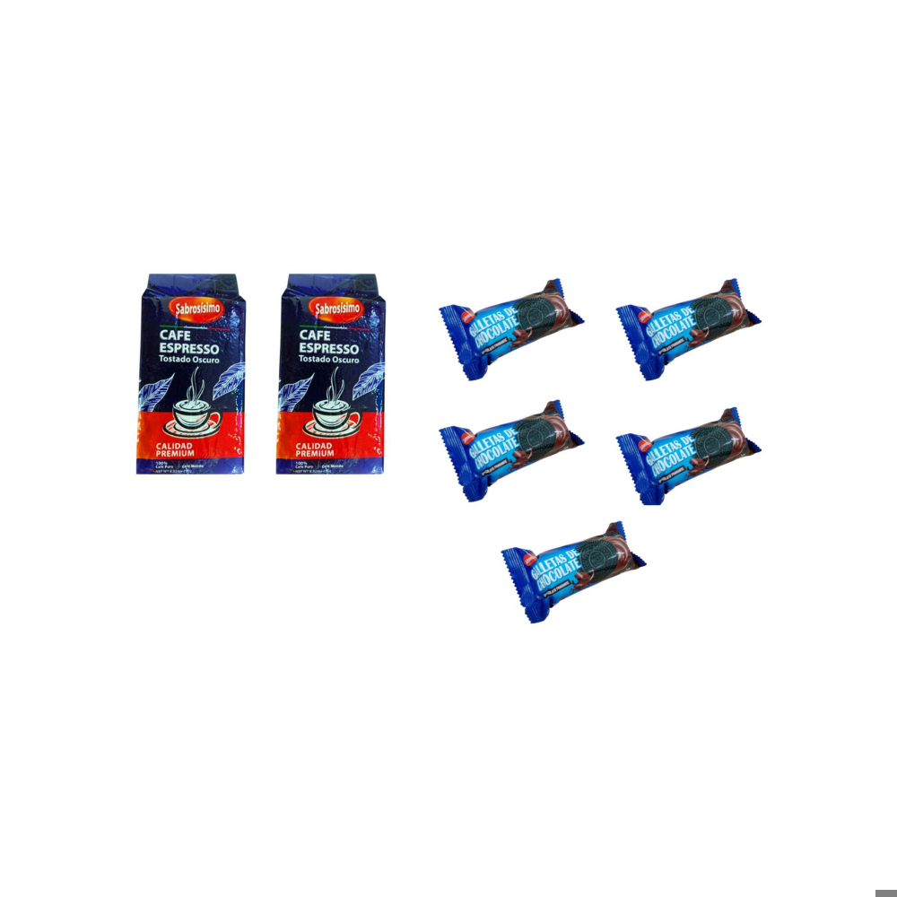 Combo Café espresso premium Sabrosísimo (2 x 250 g / 8.81 oz) + Galletas de chocolate Sabrosísimo (5 x 50 g / 1.76 oz)
