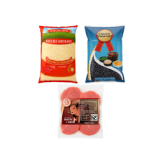 Arroz blanco de grano extra largo + Frijoles negros + Bistec de cerdo