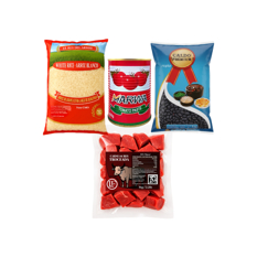 Arroz blanco de grano extra largo + Frijoles negros + Carne de res troceada + Pasta de tomate