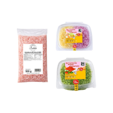 Carne de pollo separada mecánicamente + Ají cachucha molido congelado + Ajo y cebolla molida congelda