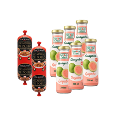 Carne mecánicamente separada de pollo condimentada + Jugo de guayaba