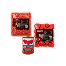 Carne molida de res + Pasta de tomate + Carne de res troceada