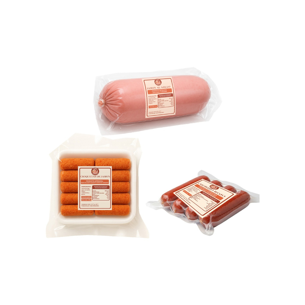 Chorizos rojos + jamón al ajillo + croquetas de jamon