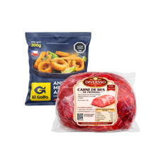 Combo: Anillos de merluza apanados con trozos de cebolla El Golfo (300 g / 10.58 oz)+Carne de res de primera Diversso (1 kg / 2.2 lb)