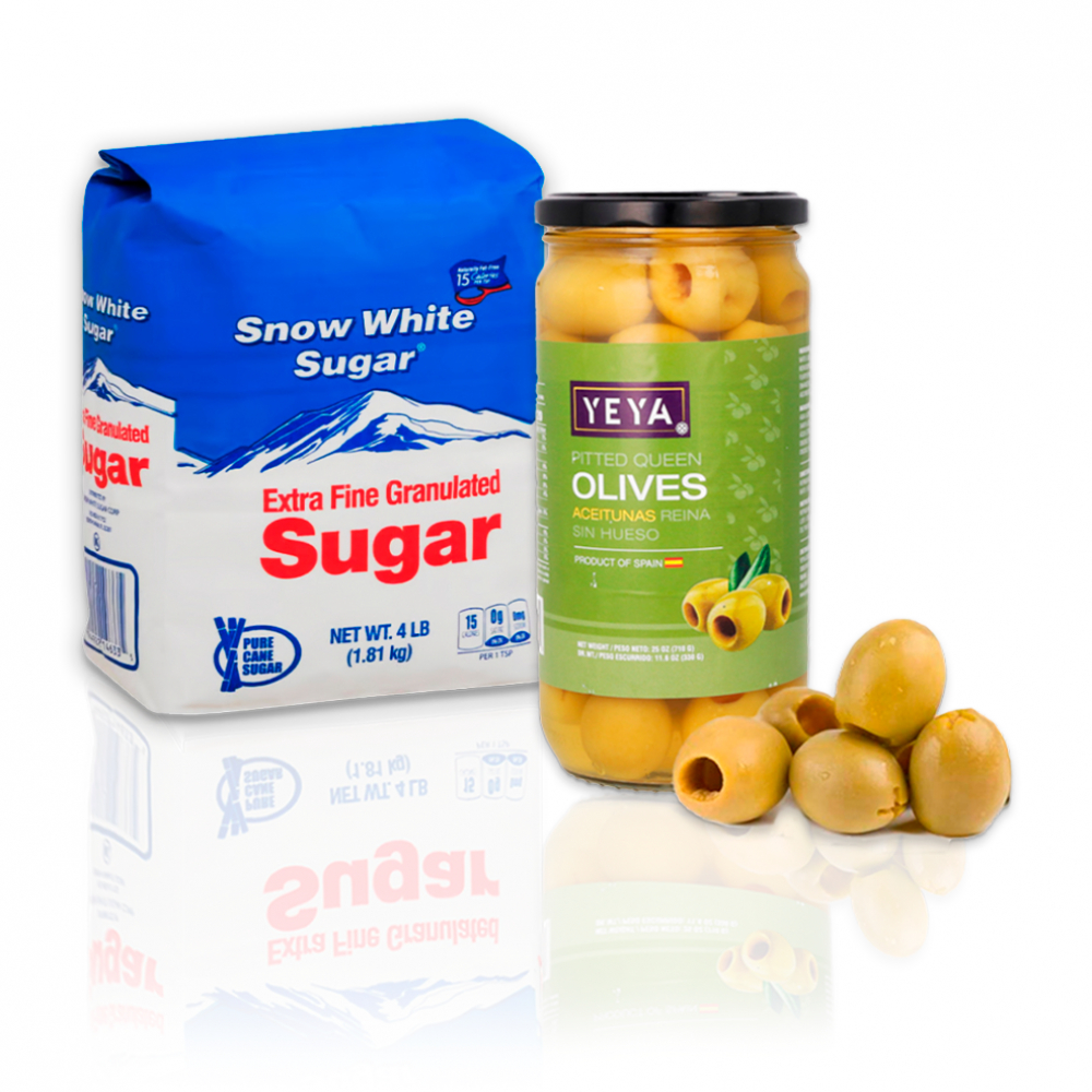 Combo Azúcar Snow White + Aceitunas Reina extra grandes