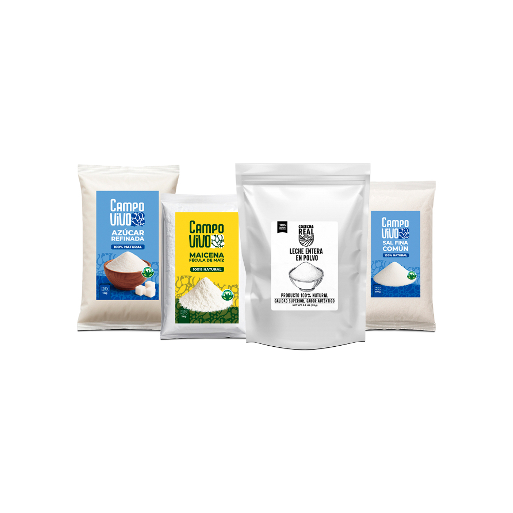 Combo básico #7: Leche entera en polvo + Sal fina común + Maicena + Azúcar refinada