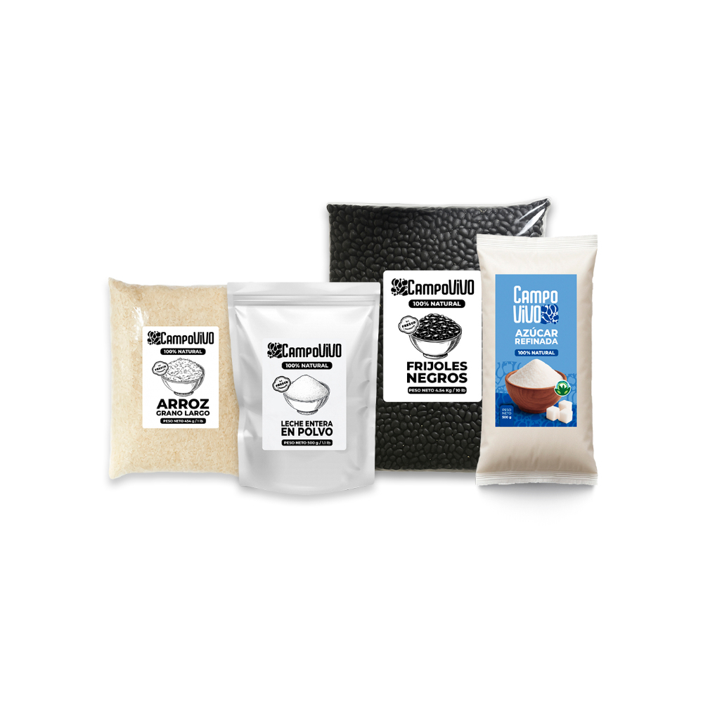 Combo básico Campo Vivo #10: Leche entera en polvo + Arroz grano largo + Azúcar refinada + Frijoles negros
