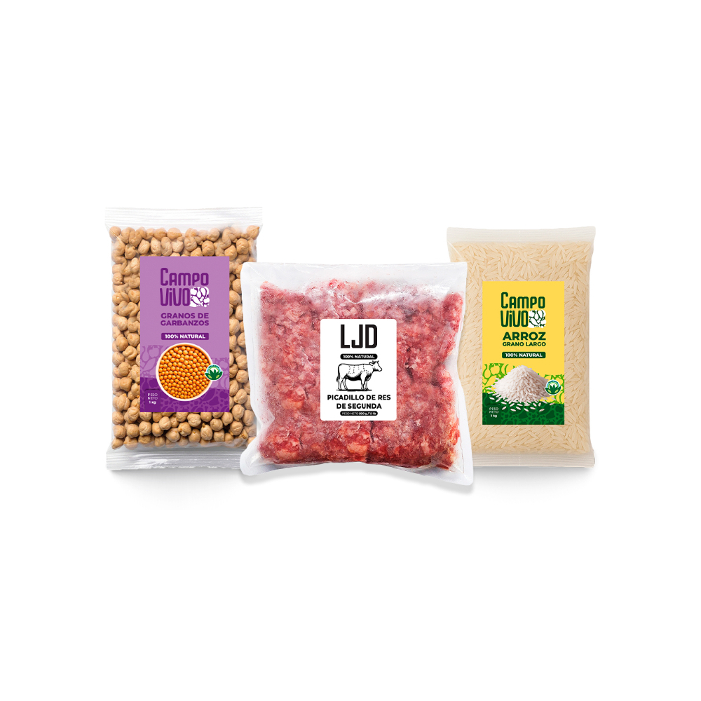 Combo Campo Vivo: Arroz de grano largo + Picadillo de res de segunda LJD + Garbanzos