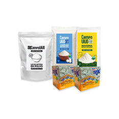 Combo Campo Vivo para desayuno: Leche entera en polvo + Azúcar blanca refinada + Caja de refresco en polvo sabor mango Trix + Maicena
