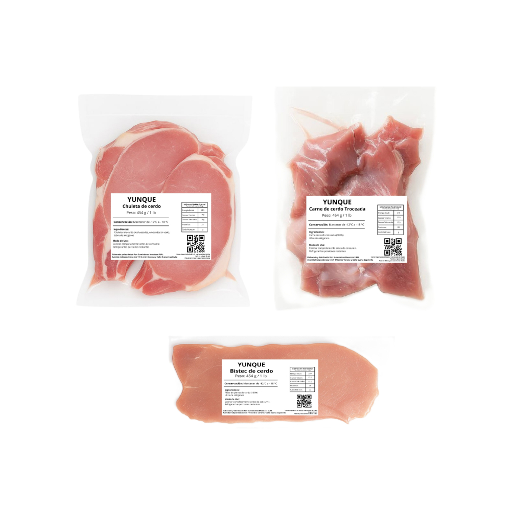 Combo de Bistec de cerdo + Carne de cerdo troceada + Chuletas de cerdo