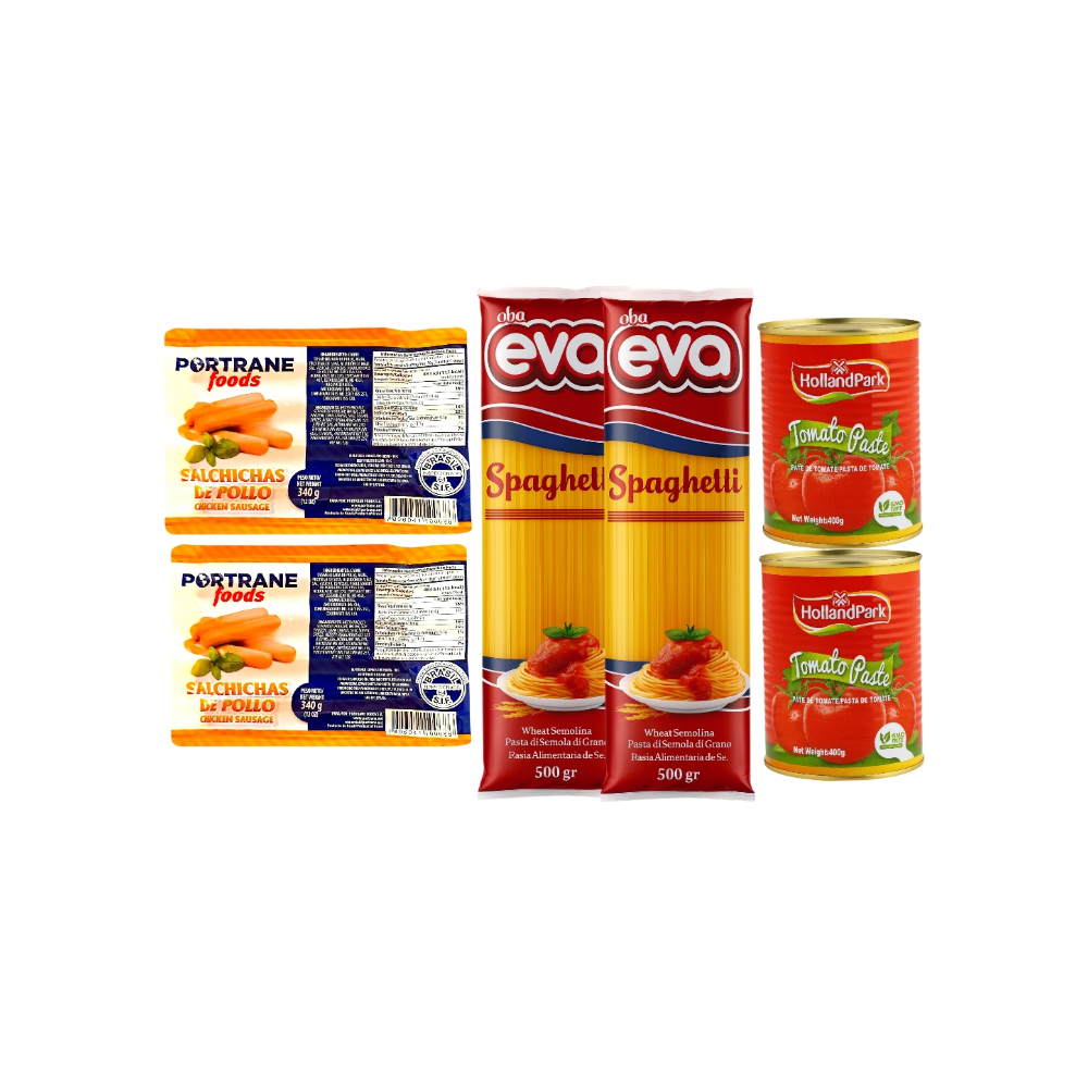 Combo de espaguetis + salchichas + pasta de tomate
