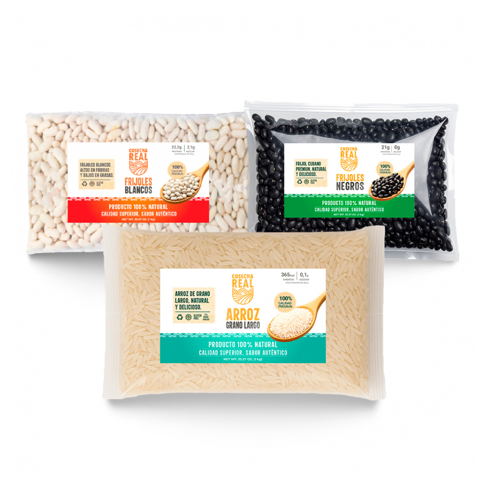 Combo de granos selectos Cosecha Real #23: Arroz de grano largo + Frijoles blancos + Frijoles negros