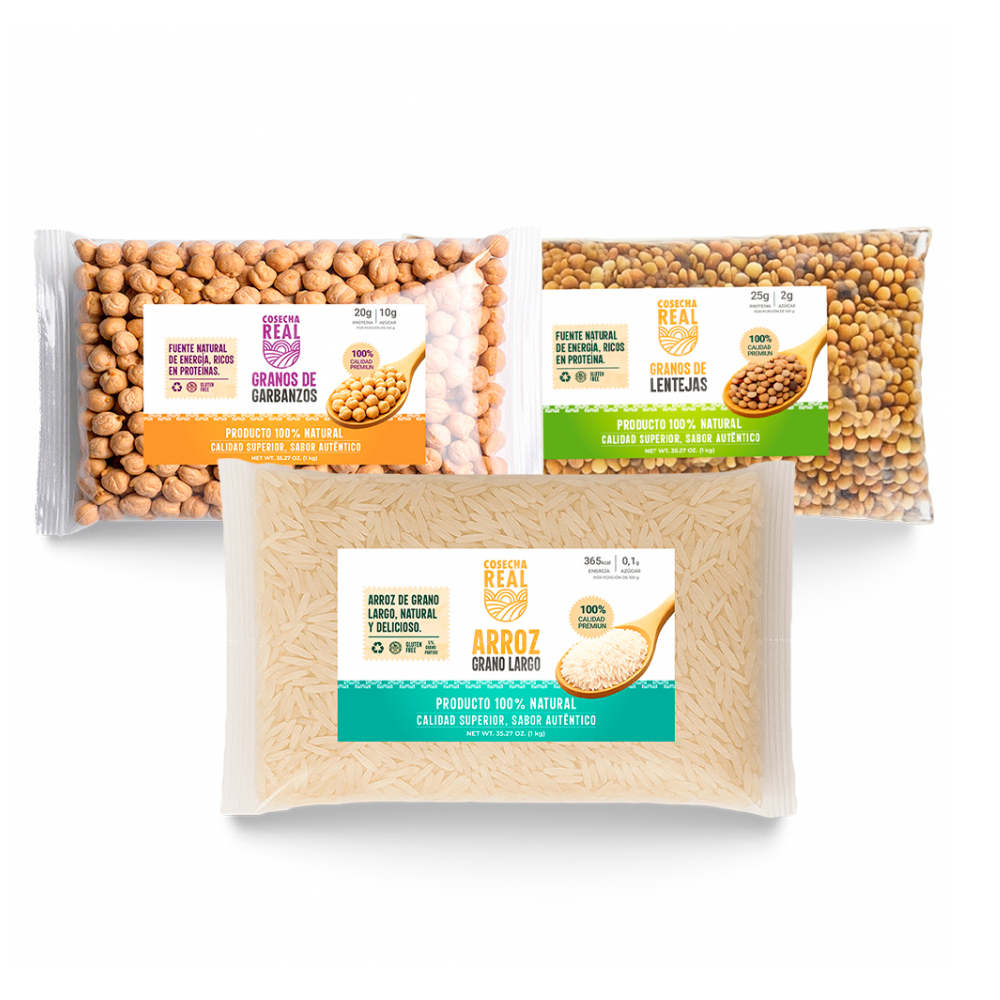Combo de granos selectos Cosecha Real #25: Arroz de grano largo + Garbanzos + Lentejas