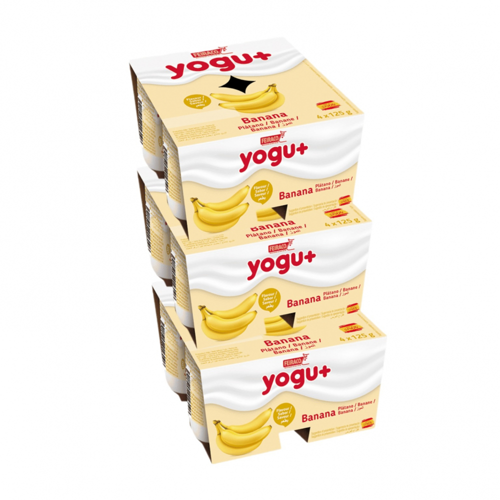 3xYogurt pasteurizado sabor plátano Yogu+ Feiraco (4 x 125 g / 4.41 oz)