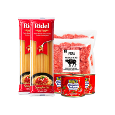 Combo para espaguetis #2: Espaguetis Ridel + Picadillo de res EGEA + Pasta de tomate Burcu