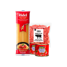 Combo para espaguetis: Espaguetis Ridel + Picadillo de res EGEA + Pasta de tomate Burcu