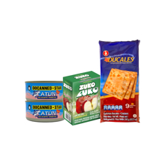 Combo para merienda galletas de soda + atún + refresco de manzana