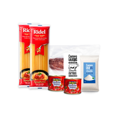Combo para pasta: Espaguetis Ridel + Pasta de tomate Burcu + Picadillo de res Campo Vivo + Sal fina Campo Vivo