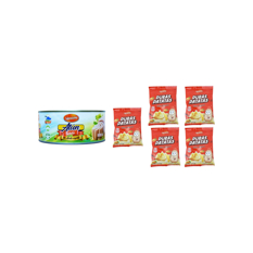 Combo Trozos de atún en aceite Sabrosísimo (1 kg /2.2 lb) + Puré de puras patatas Sabrosísimo (5 x 40 g / 1.41 oz)