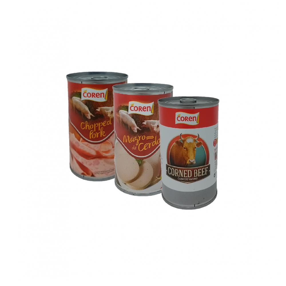 Corte de cerdo enlatado + Fiambre de magro de cerdo + Carne de res enlatada
