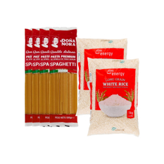 Espagueti Premium de sémola de trigo duro Doña Nora (500 g / 1.1 lb)+Arroz blanco de grano largo Energy (1 kg / 2.2 lb)