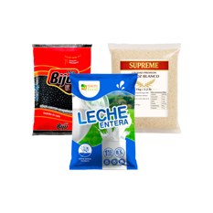 Leche entera en polvo Macro Food + Frijoles negros MEU BIJU + Arroz blanco de grano largo premium Supreme