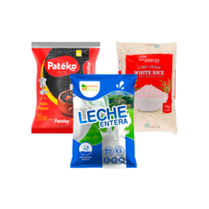 Leche entera en polvo Macro Food + Frijoles negros Patéko + Arroz blanco de grano largo Energy