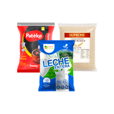 Leche entera en polvo Macro Food + Frijoles negros Patéko + Arroz blanco de grano largo premium Supreme