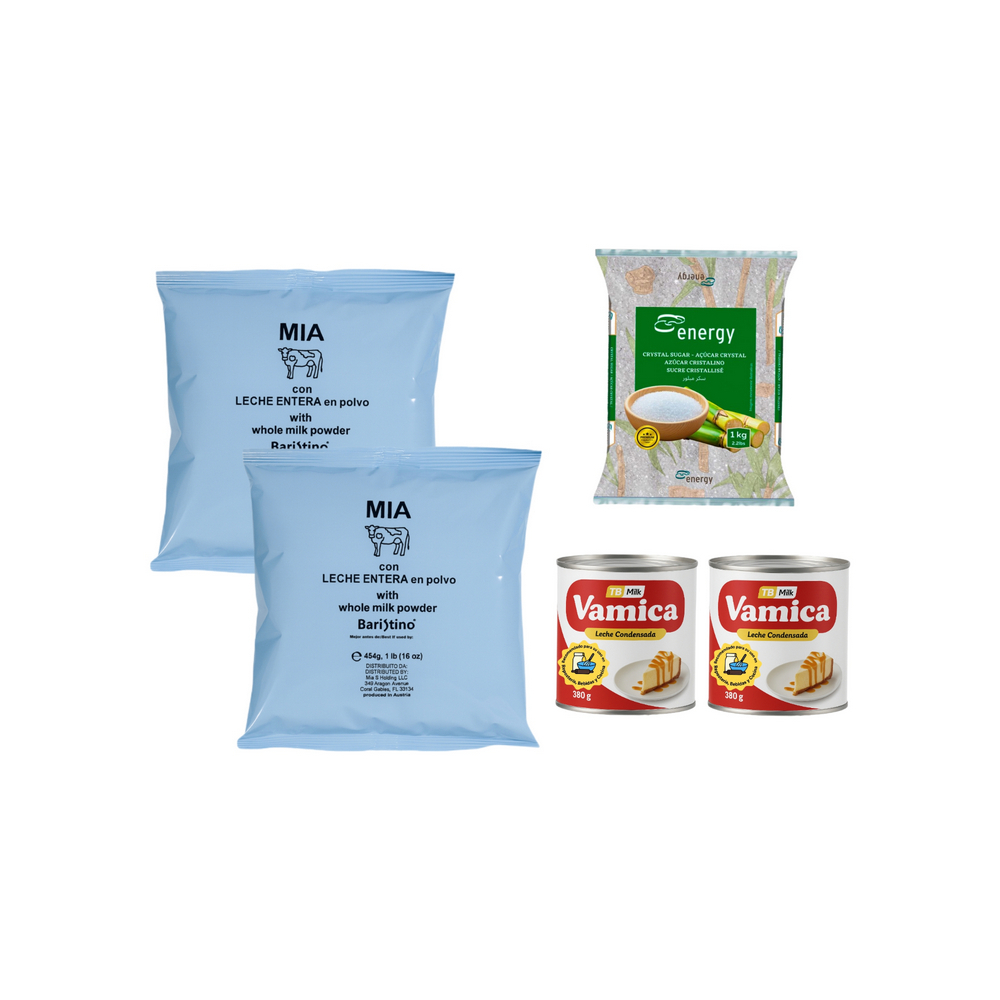 Leche entera en polvo Mia + Azúcar blanca Energy + Leche condensada Vamica