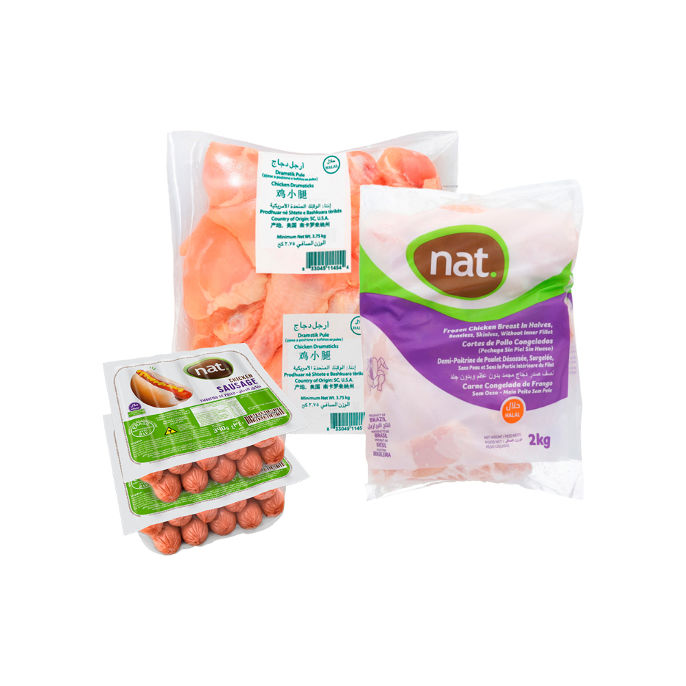 Muslos de pollo + Salchichas de pollo + Pechuga de pollo
