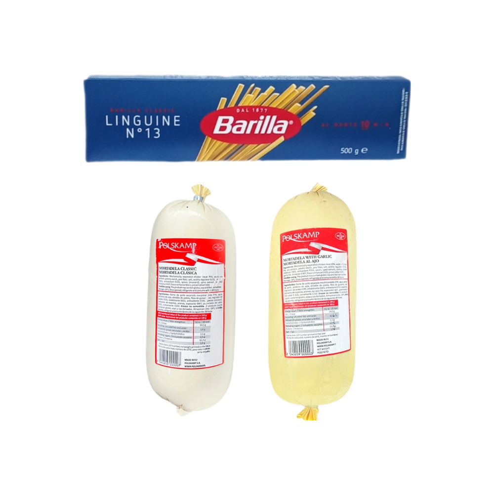 Pasta linguine No.13 + Mortadela clásica + Mortadella al ajo